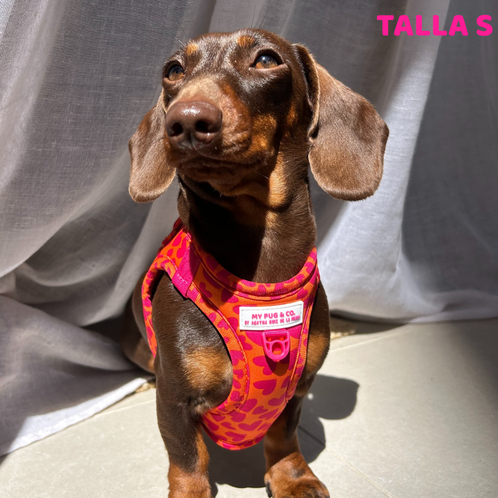 Ya habíamos comprado el de Agatha Ruiz y el de corazones rosas, nos encantan, son perfectos y cómodos. Cada diseño es mejor que el anterior, y me parece un detalle bonito y cómico la caja con su nota y su galletita. Muchas gracias, siempre repetiremos! Adjunto fotos de Calabaza con su arnés y su dedicatoria.
