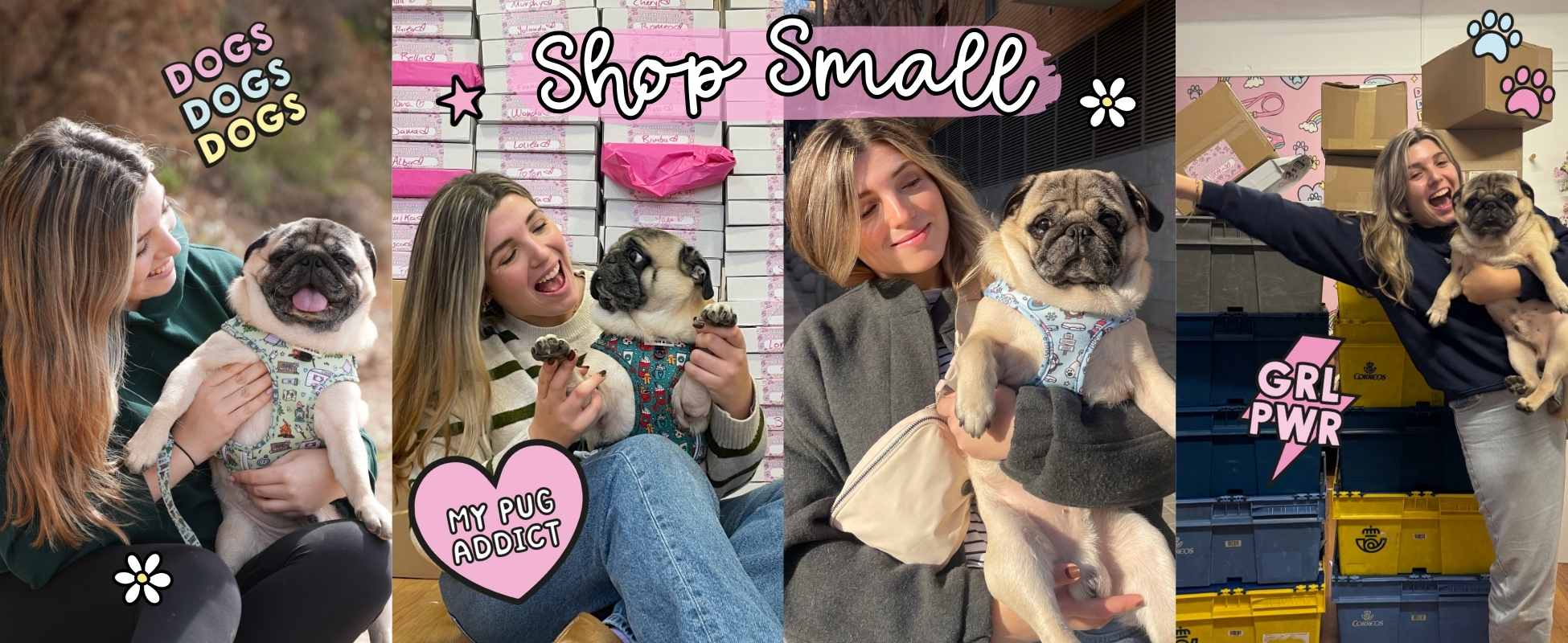 Over the years, we've launched more than 30 different collections, pioneering accessories in Spain that were previously difficult to find, such as bag hangers, waterproof leashes, walking bags, and knitted sweaters for dogs. Today, My Pug & Co. collaborates with iconic brands like Agatha Ruiz de la Prada, has its own office, international retail outlets, and, most importantly, a growing community full of people who share our passion for dogs.