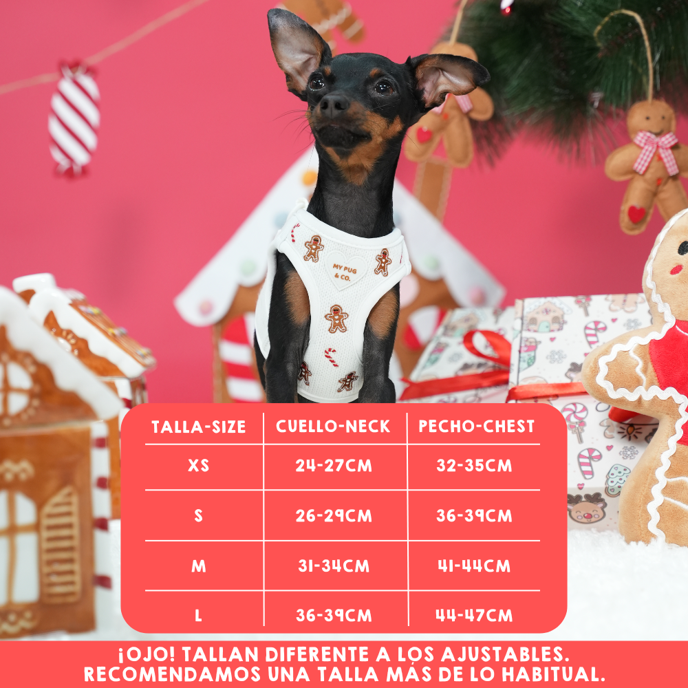 Es nuestro primer arnés de este material le queda perfecto, ahora que viene el frío y va muy abrigadito algunos días le quedará genial para no ir tan ajustado y que ganas de estrenarlo cuando haga buen tiempo el año que viene en la playa!!!!