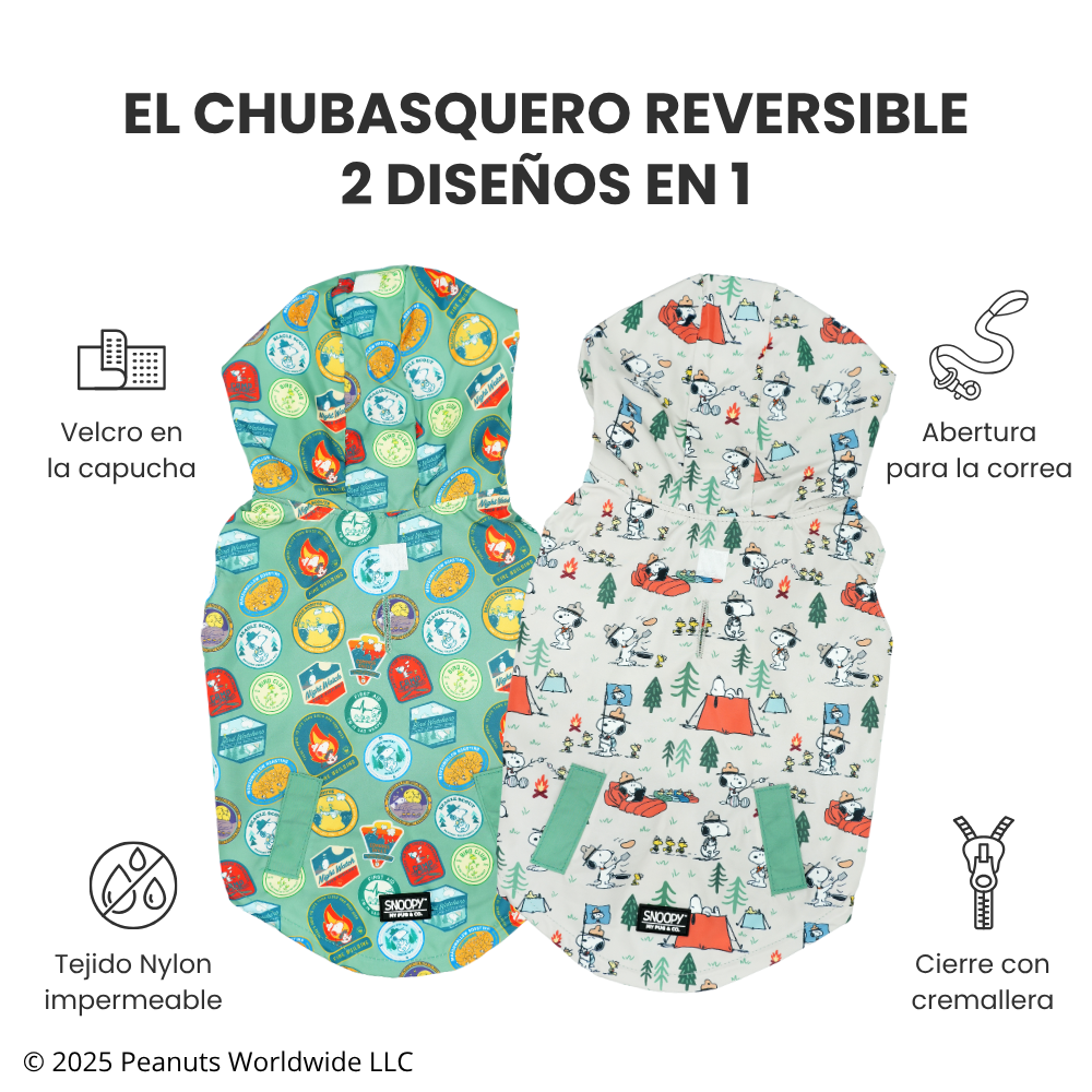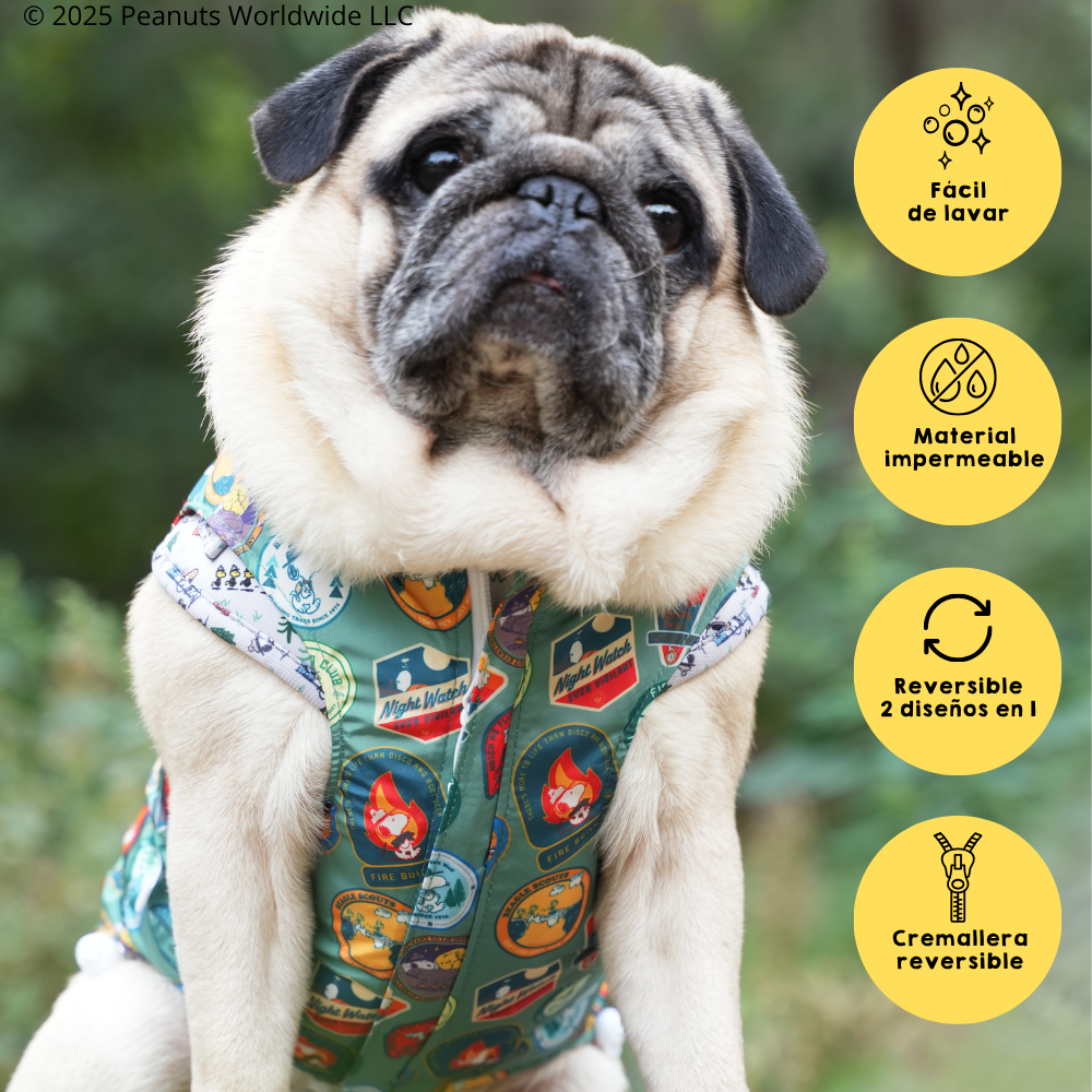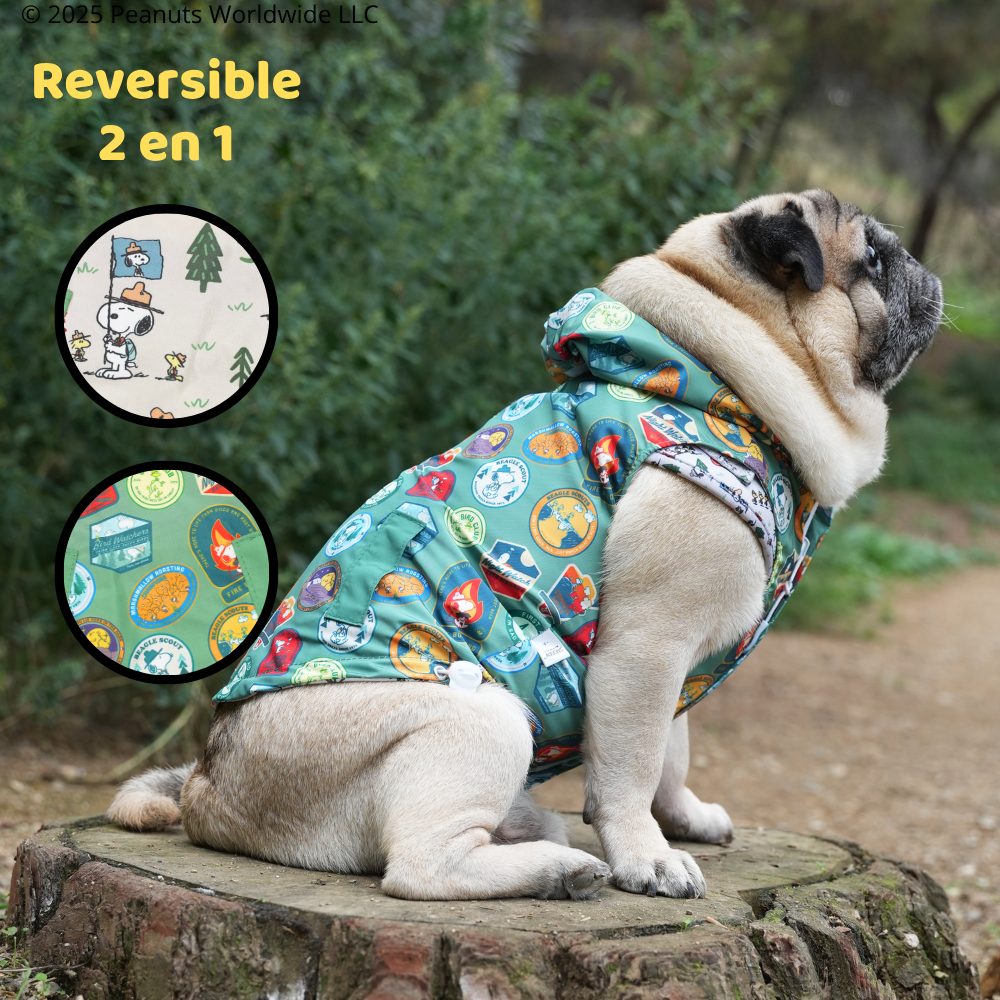 Chubasquero Reversible Snoopy™️ x My Pug & Co. especial para perritos más aventureros.