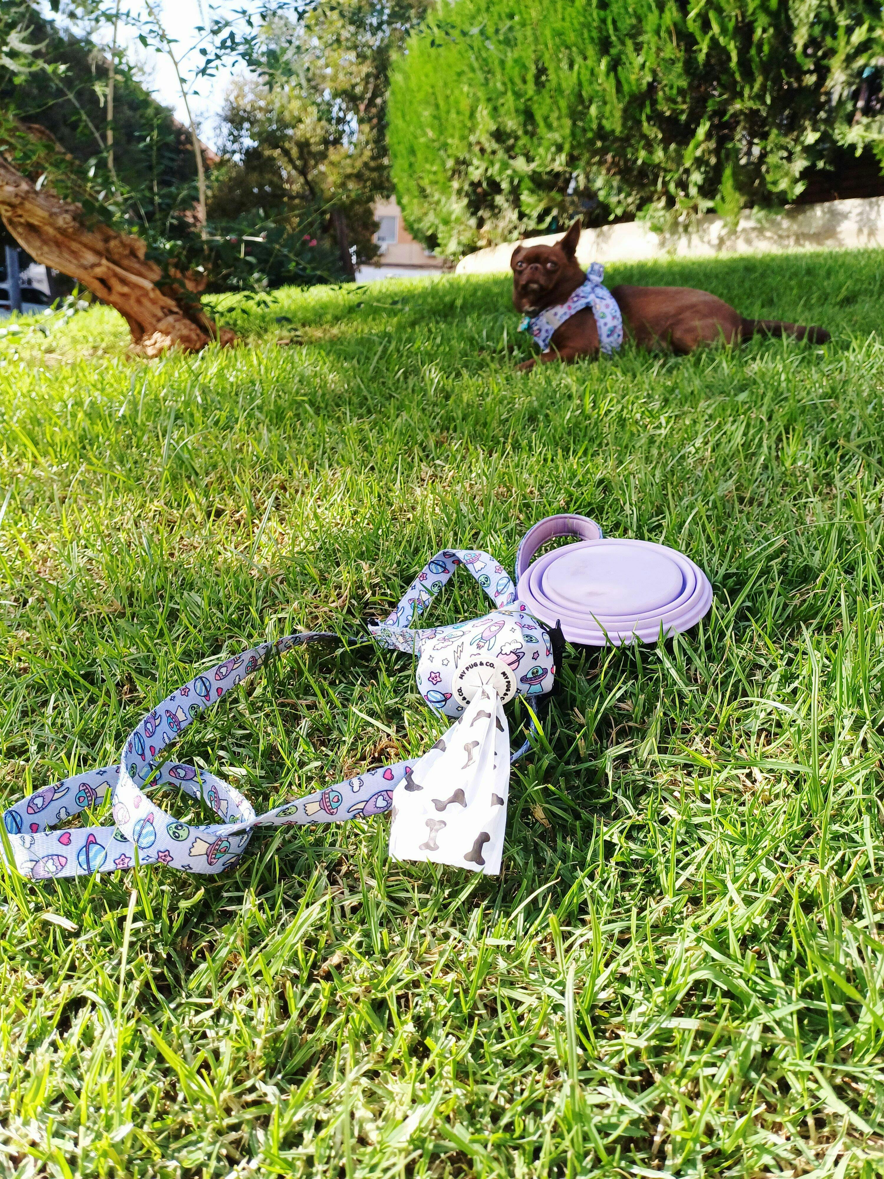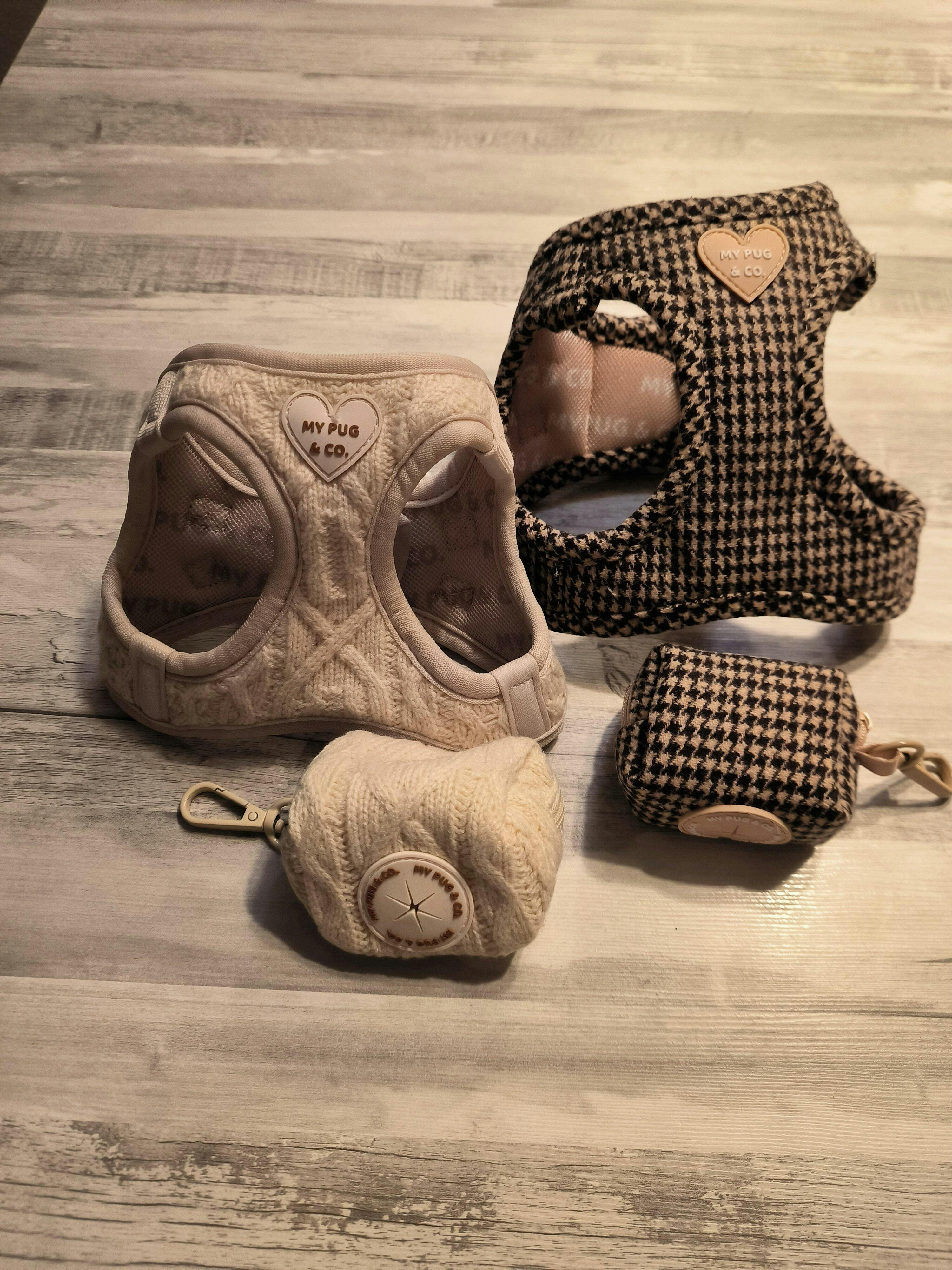 Ya son 7 diseños los que tenemos de arnés, correas, bolsitas todo a juego y todossss son 💖 preciososss . Calidad súper los lavo en lavadora a temperatura 30 grados y salen preciosos .Una maravilla, seguiremos por supuesto comprando más para mi pequeño Noah 🐶
