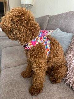 Estoy súper encantada con el arnés body Teddy luxe,es suave,calentito y precioso. Chloe mi caniche minitoy no puede ir más adorable,cómoda y segura con el. Nos super encanta a ambas.