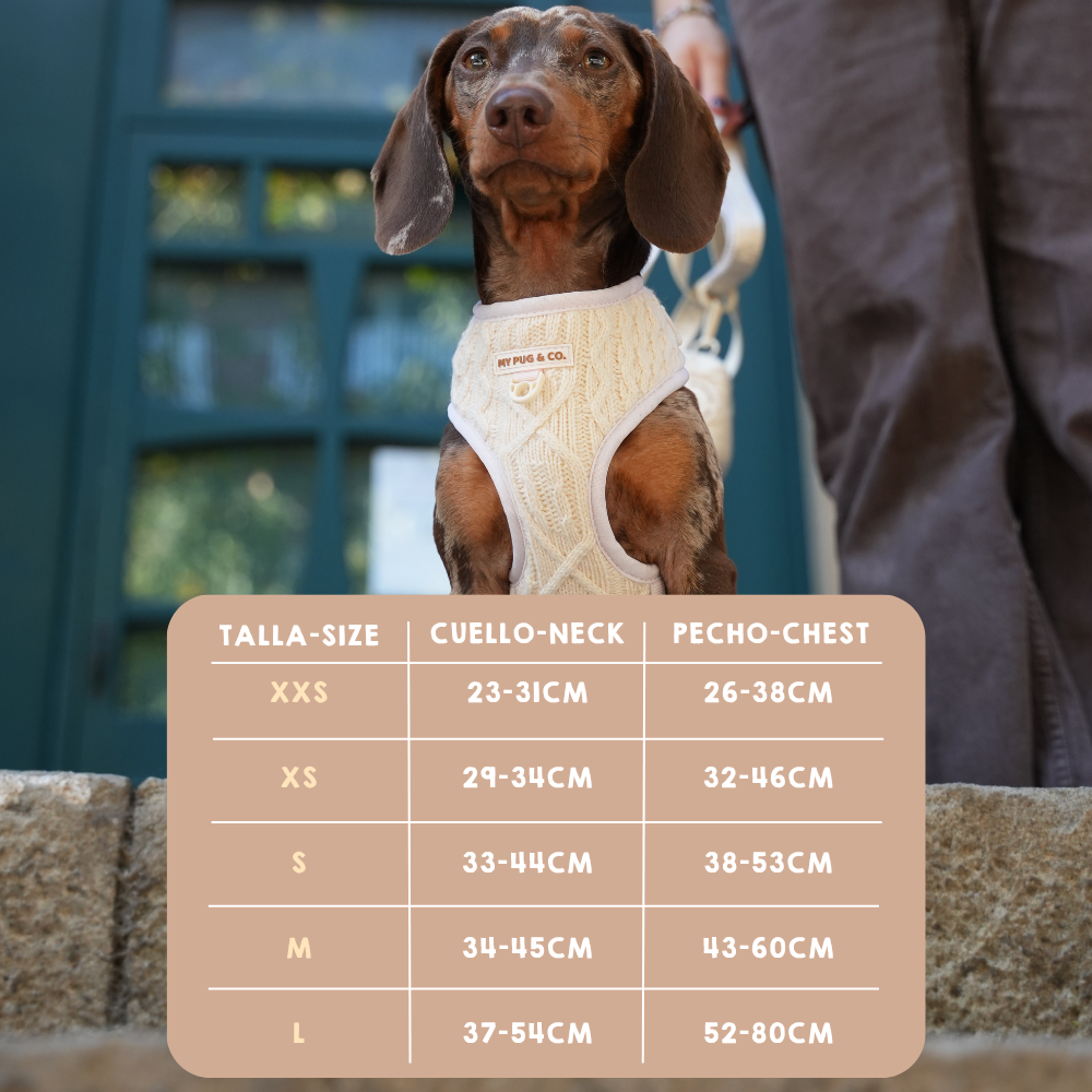 La calidad y el diseño del arnés y de la correa son excelentes. Le va perfecto a mi pequeño Brandy que no llega a los 2kg y va divino por el barrio! Estoy encantada con los productos 🫶🏼