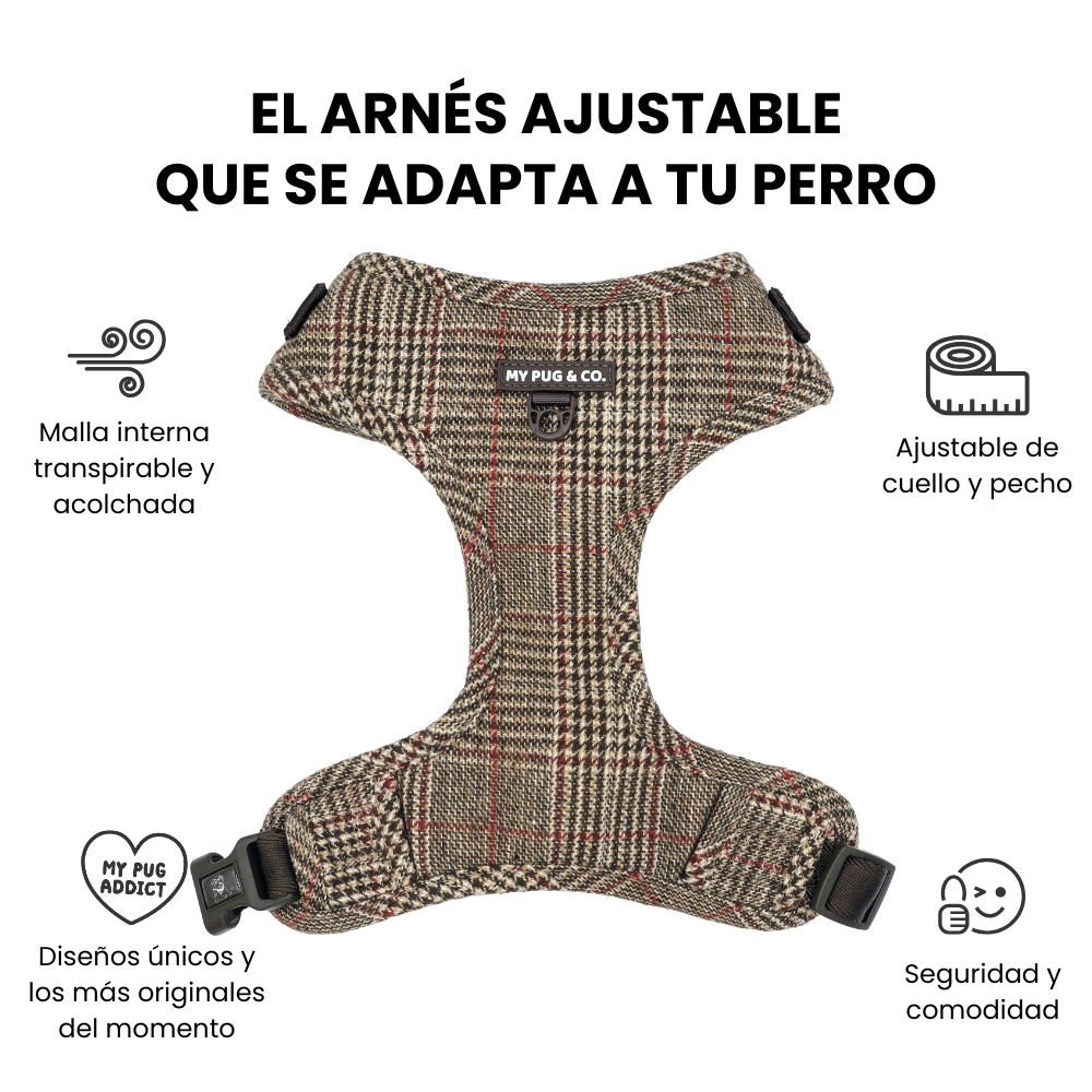 • Arnés ajustable tanto en el cuello como en el pecho, ajustándose de forma cómoda a perros de todos los tamaños.