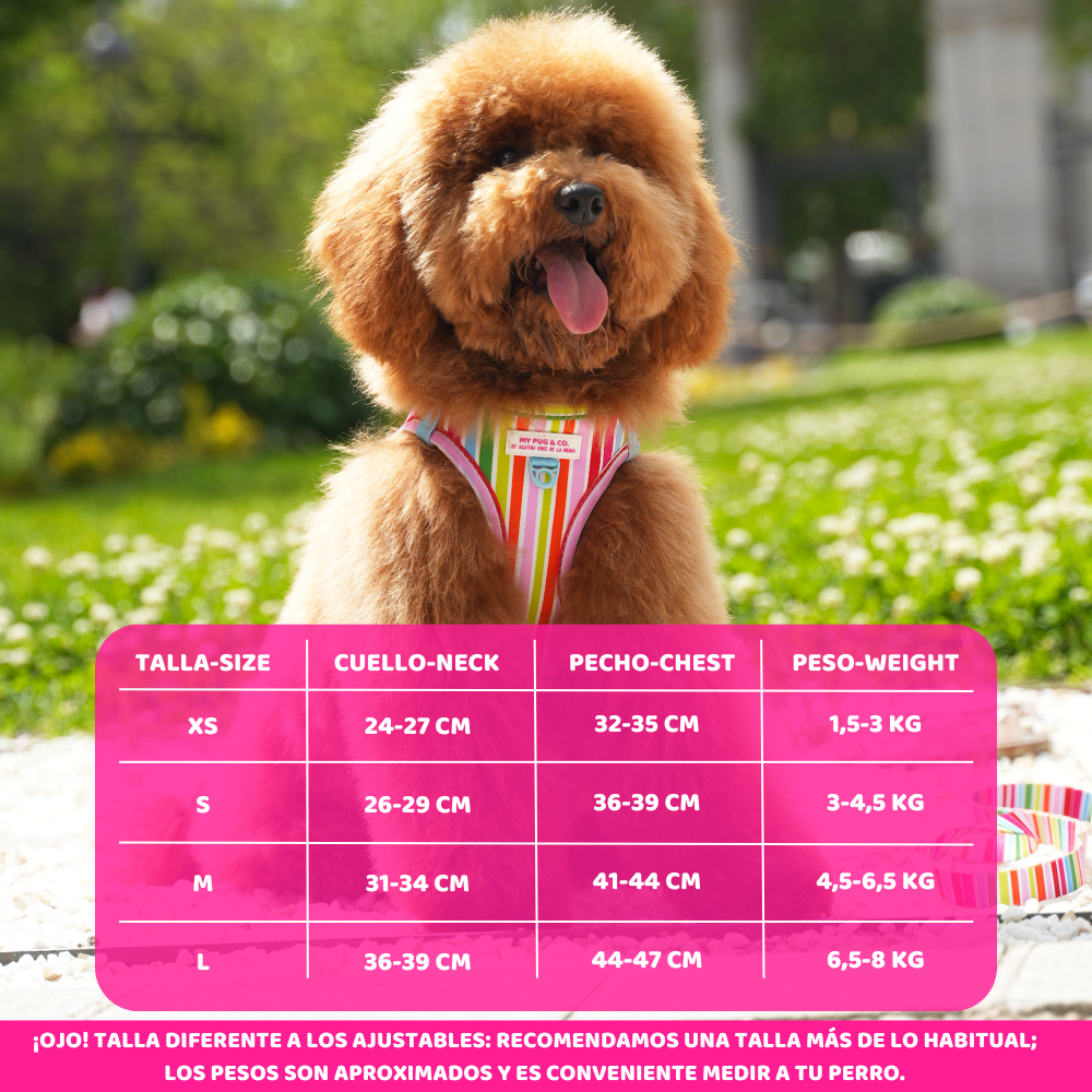 Ojo! El tallaje es totalmente diferente a los arneses ajustables.