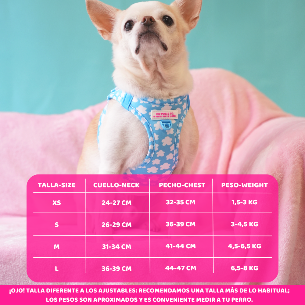 Es nuestro primer arnés de este material le queda perfecto, ahora que viene el frío y va muy abrigadito algunos días le quedará genial para no ir tan ajustado y que ganas de estrenarlo cuando haga buen tiempo el año que viene en la playa!!!!