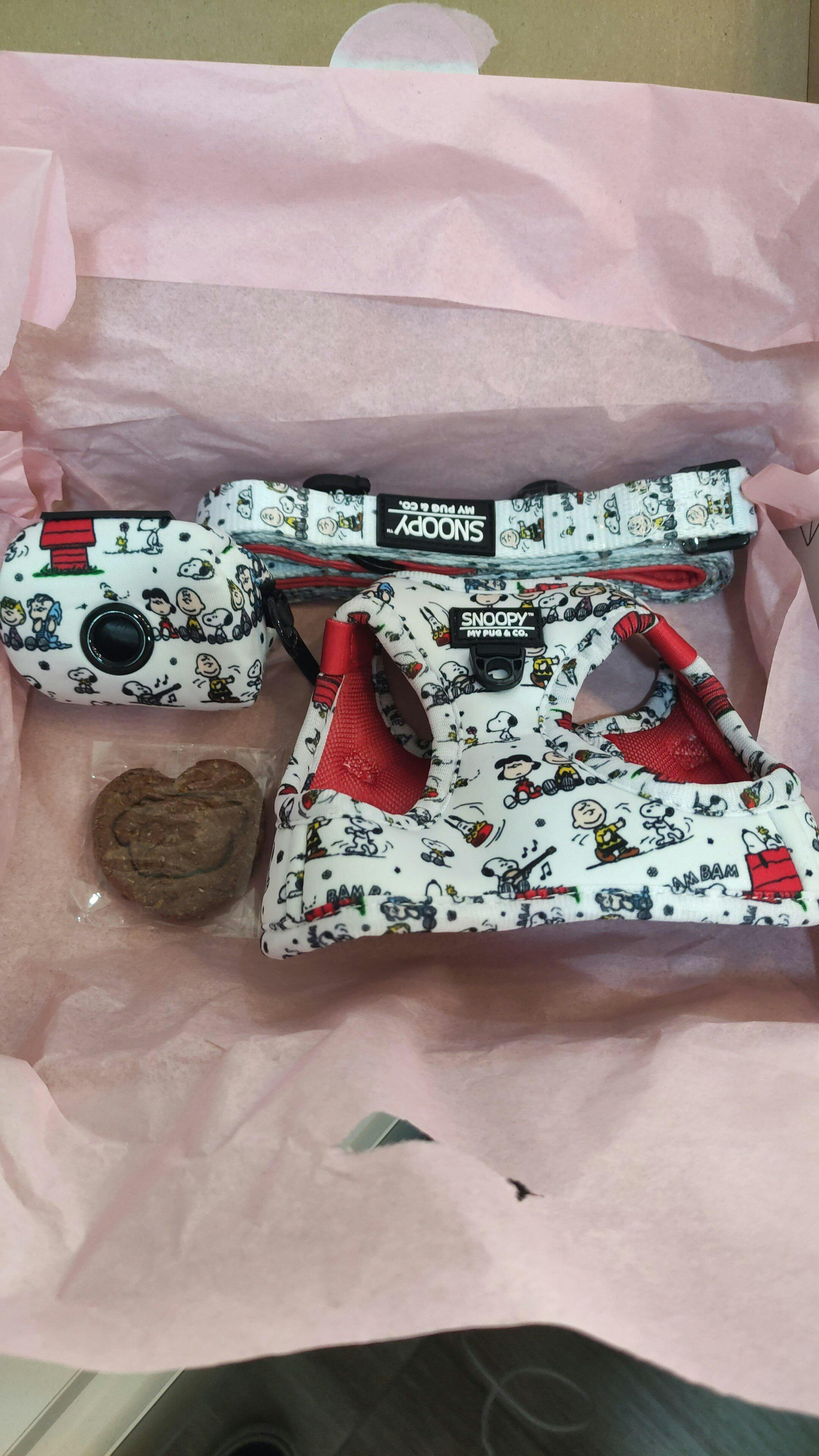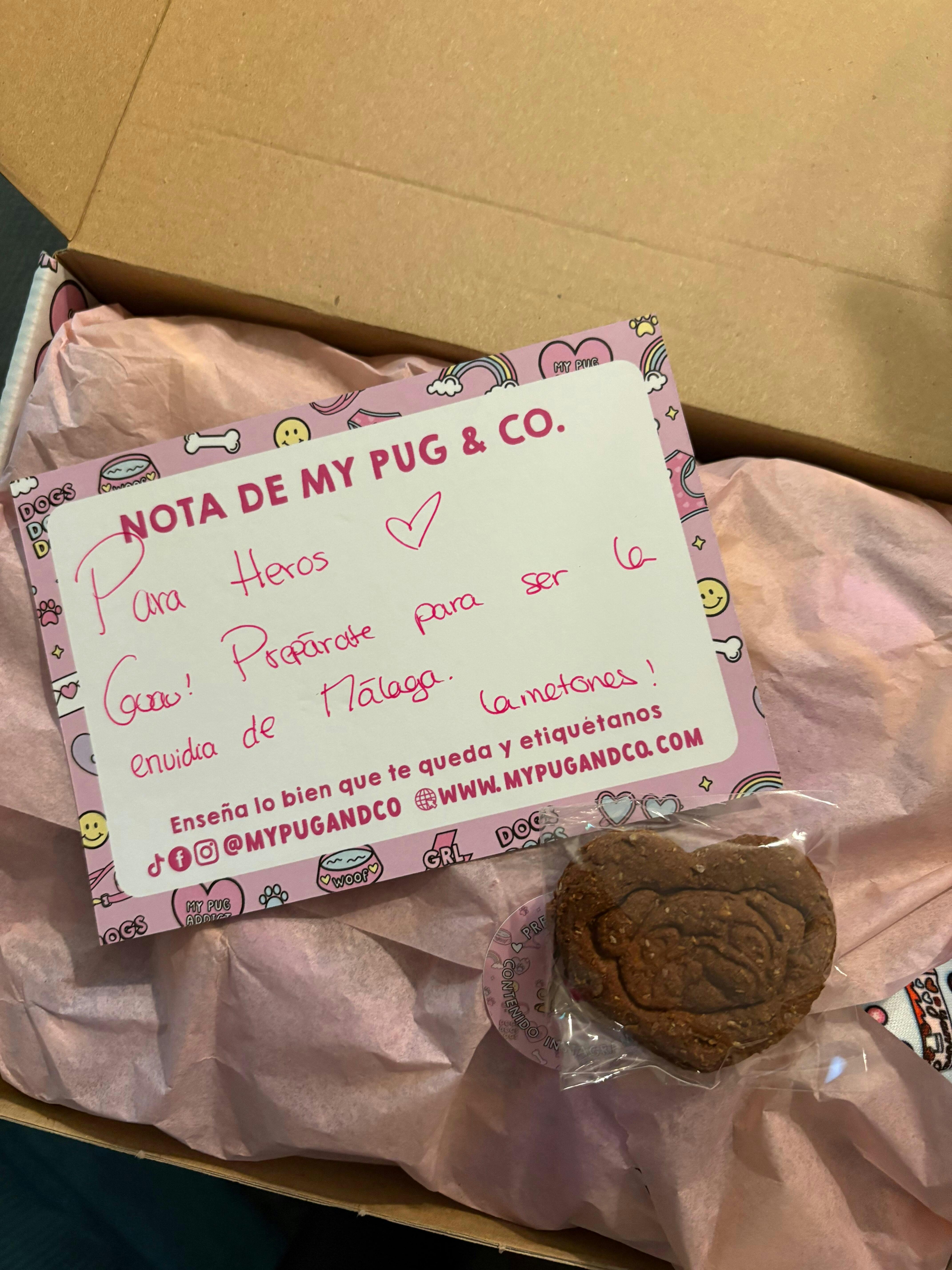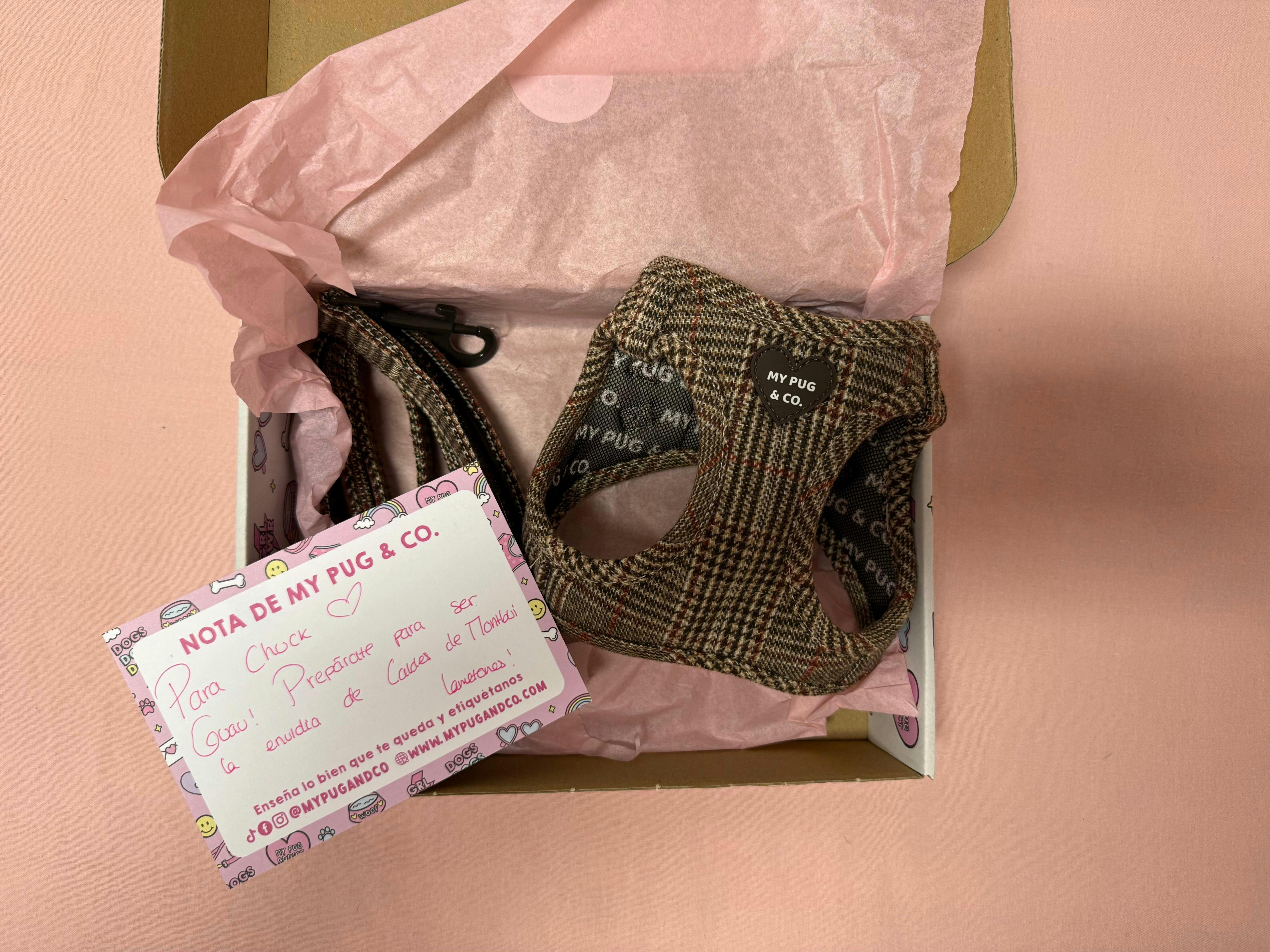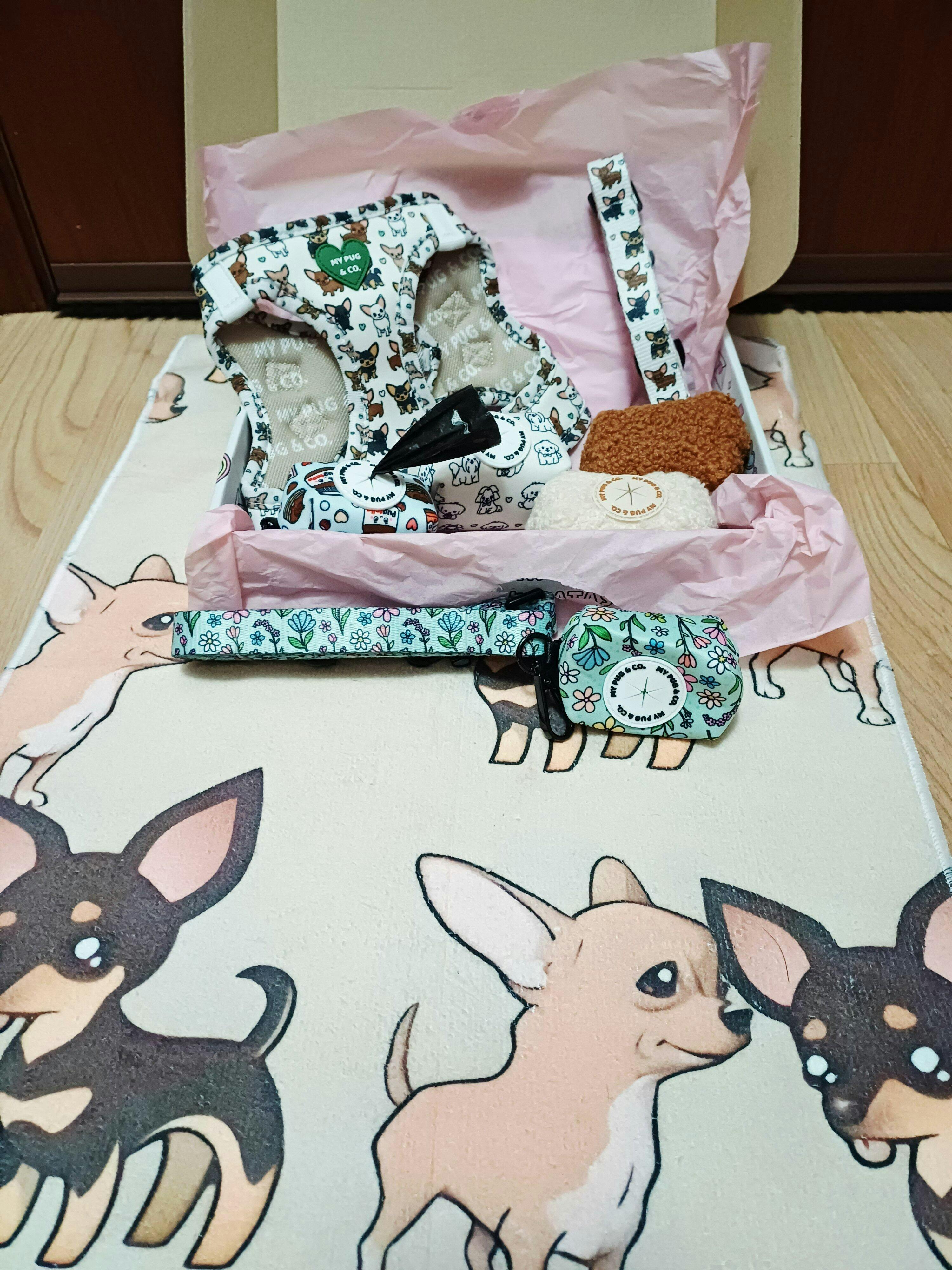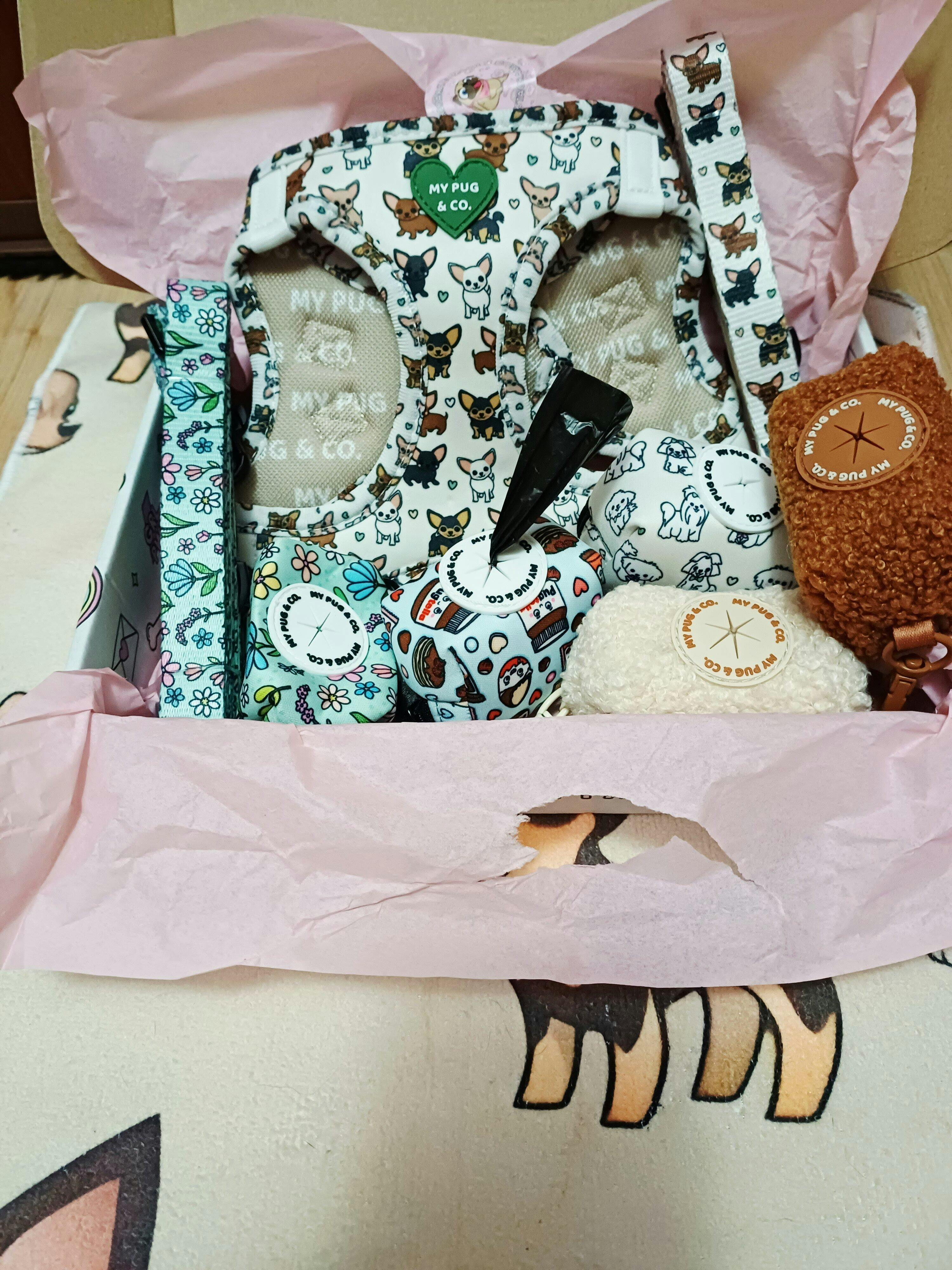 Fascinada con My Pug & Co! El envío fue rapidísimo y el envoltorio, simplemente inmejorable. Compré un arnés, una correa y un portabolsas a juego, y todo llegó en una caja preciosa y divertida, envuelto con mimo en papel de seda… ¡y con una galleta de regalo para mi perrita! 🐾 Mejor imposible. Os dejo una foto de Bimba con su arnés precioso de Ágatha Ruiz de la Prada 💖